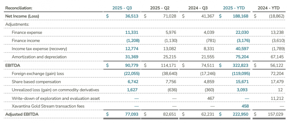 - Quarterly financial performance reflected higher copper concentrate sales at the Tucumã Operation and strengthening copper and gold prices toward the end of the quarter as well as higher operating expenses at Tucumã following the declaration of commercial production on July 1, 2025.