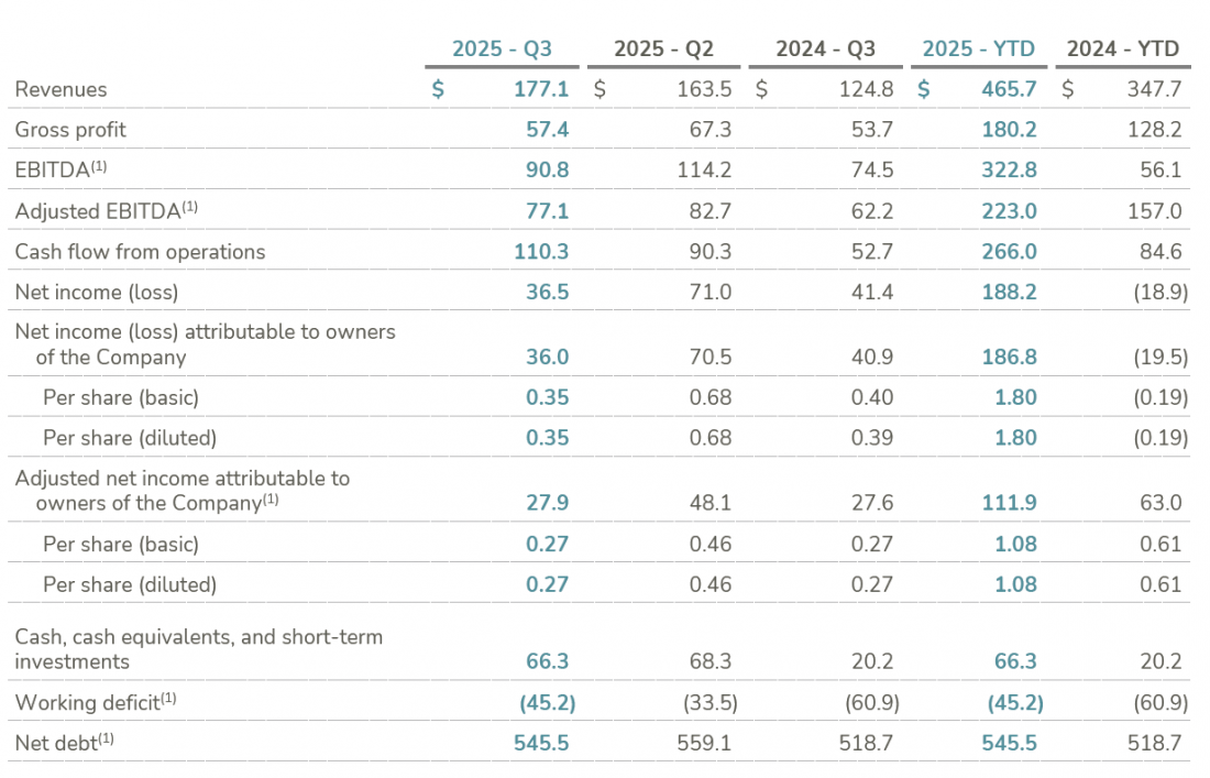 (*) These are non-IFRS measures and do not have a standardized meaning prescribed by IFRS and might not be comparable to similar financial measures disclosed by other issuers. Please refer to the Company’s discussion of Non-IFRS measures in its Management’s Discussion and Analysis for the three and nine months ended September 30, 2025 and the Reconciliation of Non-IFRS Measures section at the end of this press release.