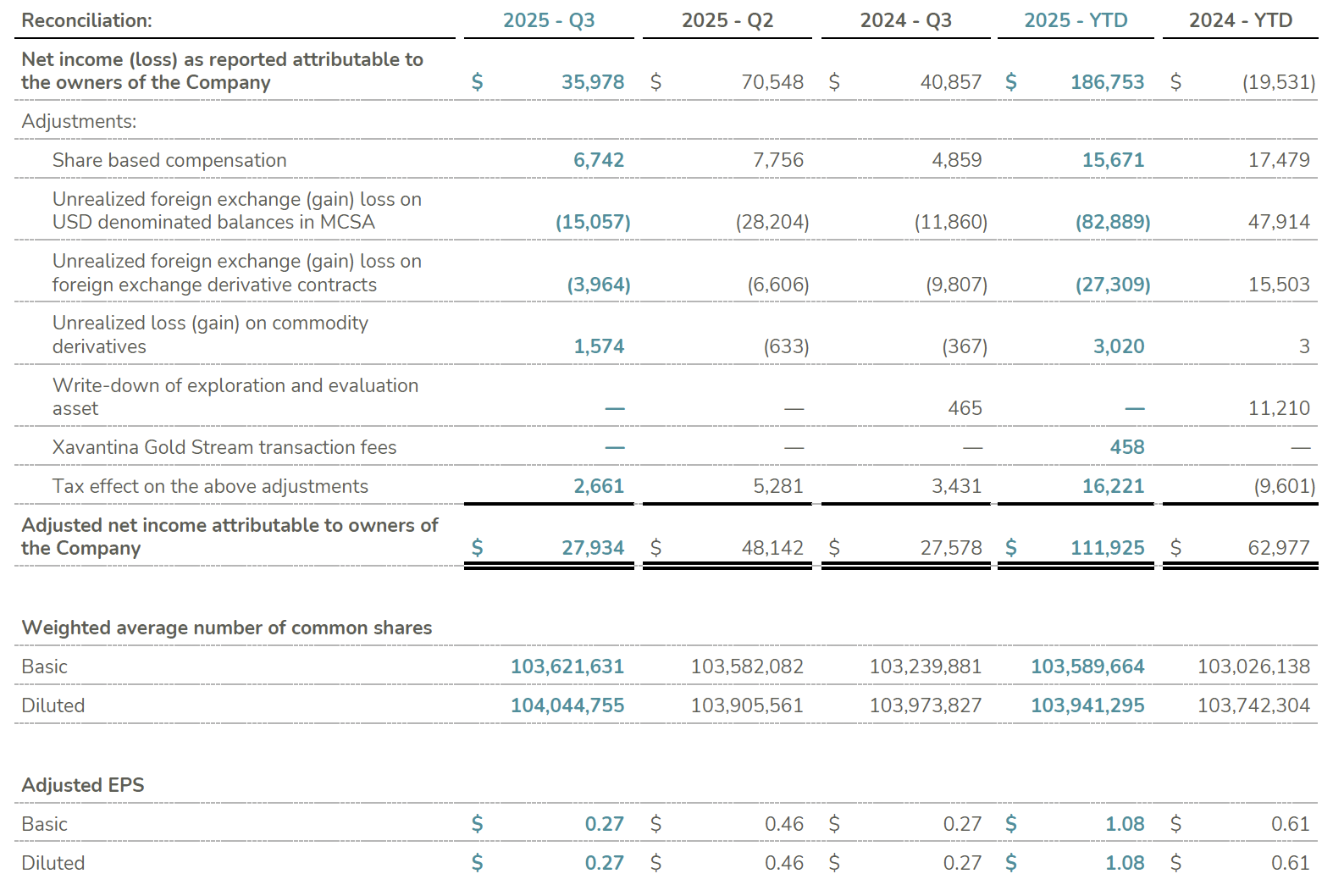 (1) EBITDA, adjusted EBITDA, adjusted net income (loss) attributable to owners of the Company, adjusted net income (loss) per share attributable to owners of the Company, net (cash) debt, working capital, copper C1 cash cost, copper C1 cash cost including foreign exchange hedges, gold C1 cash cost and gold AISC are non-IFRS measures. These measures do not have a standardized meaning prescribed by IFRS and might not be comparable to similar financial measures disclosed by other issuers. Please refer to the Company’s discussion of Non-IFRS measures in its Management’s Discussion and Analysis for the three and nine months ended September 30, 2025 and the Reconciliation of Non-IFRS Measures section at the end of this press release.
