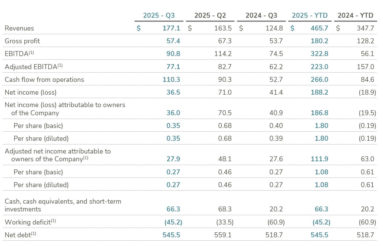 (*) These are non-IFRS measures and do not have a standardized meaning prescribed by IFRS and might not be comparable to similar financial measures disclosed by other issuers. Please refer to the Company’s discussion of Non-IFRS measures in its Management’s Discussion and Analysis for the three and nine months ended September 30, 2025 and the Reconciliation of Non-IFRS Measures section at the end of this press release.